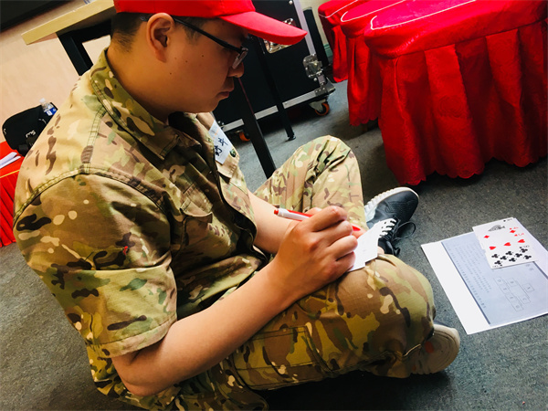 十分鐘組建完成的紅牛隊和超越隊一點也不簡單。你聽,“紅牛紅牛,世界一流!”,“超越自我,勇往直前!”氣勢如虹,雄心昭顯;你看,紅黑雙色的帽子,就是我們與眾不同的標(biāo)志。平日簡單尋常的隊列訓(xùn)練,成了我們比拼的第一戰(zhàn)場,不想做俯臥撐的我們,斗志昂揚,全力以赴。