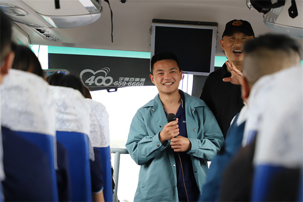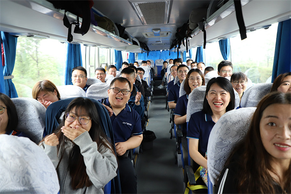 5月15日七點半,營銷系統(tǒng)全體成員正式出發(fā),踏上了一場充滿未知和挑戰(zhàn)的旅途。小伙伴們的內(nèi)心或許有些忐忑,但車上愈發(fā)高漲的互取代號的破冰環(huán)節(jié)讓大家逐漸卸去拘謹?shù)耐鈿?,沉浸在輕松愉悅的氛圍中。