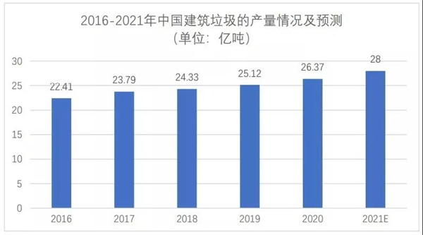 2016-2021年我國建筑垃圾的產(chǎn)量情況及預(yù)測