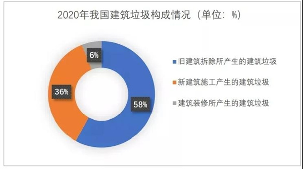 建筑垃圾的來源主要有三個方面:舊建筑拆除產(chǎn)生、新建筑施工產(chǎn)生以及建筑裝修產(chǎn)生。從2020年我國建筑垃圾的構(gòu)成分布來看,舊建筑拆除所產(chǎn)生的建筑垃圾占建筑垃圾的58%,新建筑施工產(chǎn)生的建筑垃圾占36%。由此可見,建筑物的拆除階段和新建筑的施工階段是建筑垃圾的控制關(guān)鍵點。