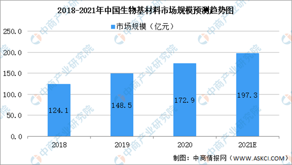 生物基材料是指用可再生原料通過生物轉(zhuǎn)化獲得生物高分子材料或單體,然后進一步聚合形成的高分子材料。生物基材料包括生物基平臺化合物、生物塑料、功能糖產(chǎn)品、木塑復合材料等,它具有傳統(tǒng)高分子材料不具備的綠色、環(huán)境友好、原料可再生以及可生物降解的特性。數(shù)據(jù)顯示,2019年中國規(guī)模以上企業(yè)生物基材料營業(yè)收入為148.49億元,較2018年增加了24.38億元。據(jù)預測,2021年我國生物基行業(yè)規(guī)模以上企業(yè)營業(yè)收入可達197.3億元。