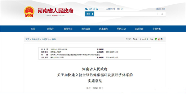 政府公告《關(guān)于加快建立健全綠色低碳循環(huán)發(fā)展經(jīng)濟體系的實施意見》