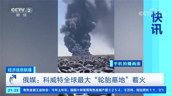 據(jù)俄媒報(bào)道,科威特全球最大的廢棄輪胎垃圾場發(fā)生火災(zāi)。視頻顯示,滾滾黑煙騰空而起,從很遠(yuǎn)的地方都能看到。當(dāng)?shù)孛襟w表示,垃圾場中密集堆放著5200萬條廢棄輪胎,輪胎燃燒釋放的致癌化合物和重金屬會對人體造成嚴(yán)重影響。如果不盡快阻止這場大火,可能會造成一場全球生態(tài)災(zāi)難。