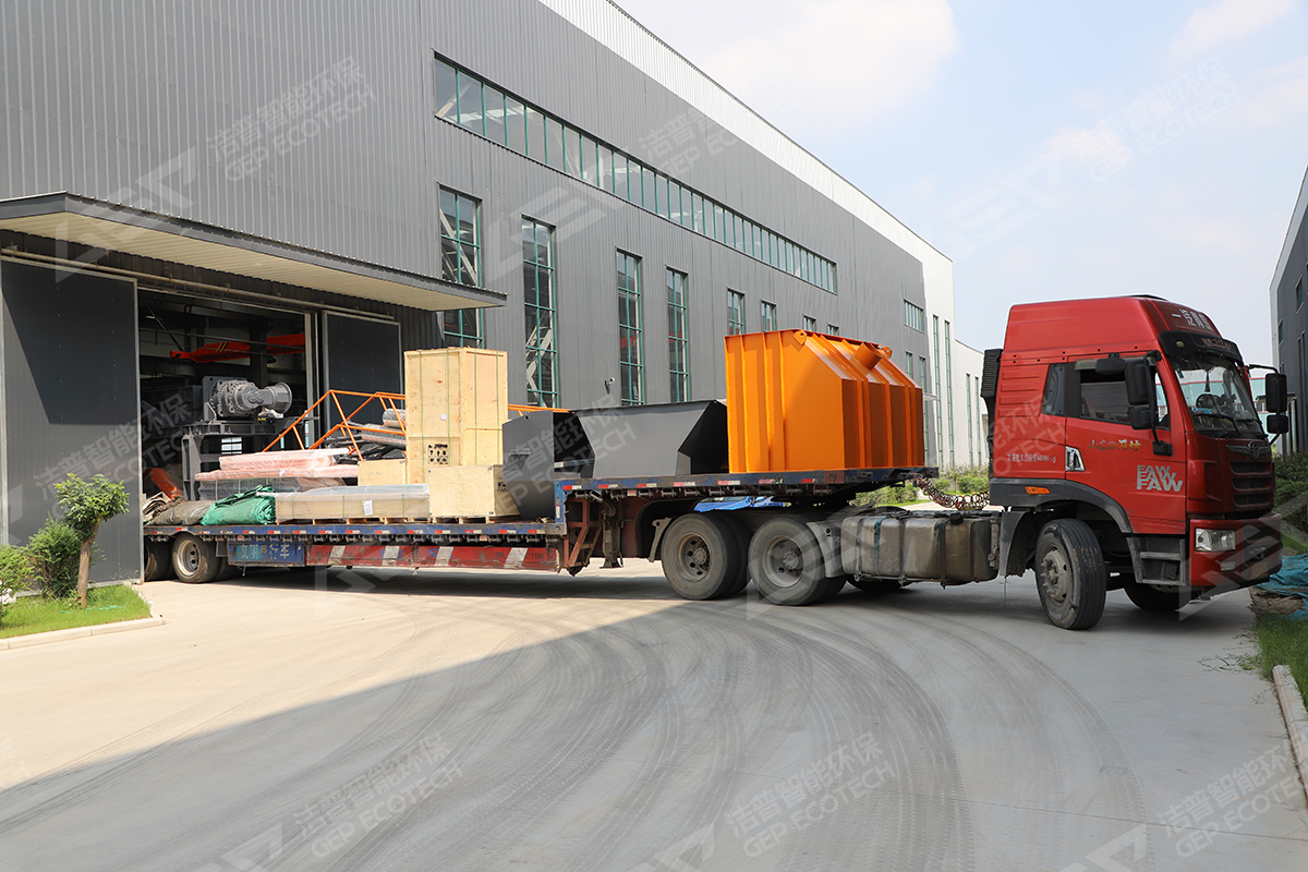 7月29日上午,潔普智能環(huán)保的GDL系列大件垃圾處置設(shè)備已經(jīng)早早的裝貨在了兩輛大車上,隨著發(fā)貨組長的手勢緩緩抬起,車輛逐步的駛出潔普廠區(qū),去往它的終服務(wù)地-西藏拉薩市,一個(gè)美麗并且非常神圣的地區(qū)。它在那即將開展未來二三十年的工作歷程,我們也為設(shè)備送上好的祝福。