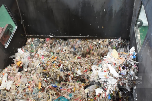 造紙廠在生產(chǎn)過程中產(chǎn)生的絞繩其組分主要是塑料、金屬和殘余紙漿。塑料和金屬往往會纏繞在一起,為處置加工帶來難度,所以在回收前一般先做破碎、分離。潔普的工業(yè)垃圾撕碎機利用兩個相對旋轉(zhuǎn)的刀之間相互剪切原理可以很好的對絞繩進行破碎,減小物料尺寸,為后續(xù)處理提供合適的粒度,磁選機則可選出金屬材料,系統(tǒng)能耗低、處理量大、經(jīng)濟性好、維護成本低。
